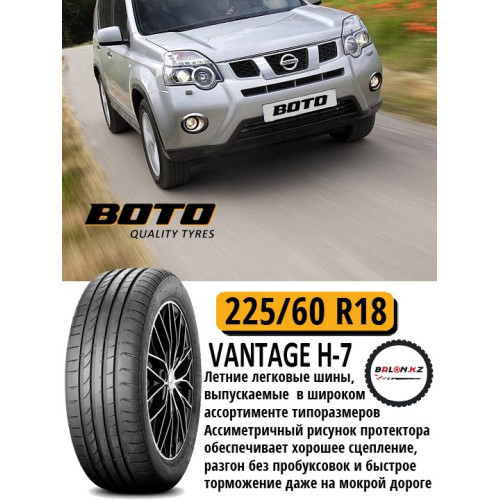 Шина Boto Vantage H-7 предназначена для использования в летний период на легковых автомобилях. Модель выпускается в широком спектре типоразмеров, начиная от R16 до R19. Благодаря этому она подходит к многочисленным транспортным средствам от различных производителей.